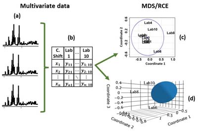 A new proposed approach to analyze multivariate data from interlaboratory comparisons. The methodology combines multidimensional scaling (MDS) and robust confidence ellipse/ellipsoid (RCE) to identify an outlying laboratory result.