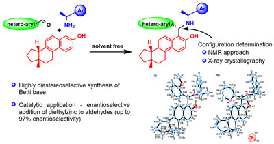 Chiral aminoethylnaphthols are synthesized through highly diasteroselective three component condensation and evaluated further as catalysts.