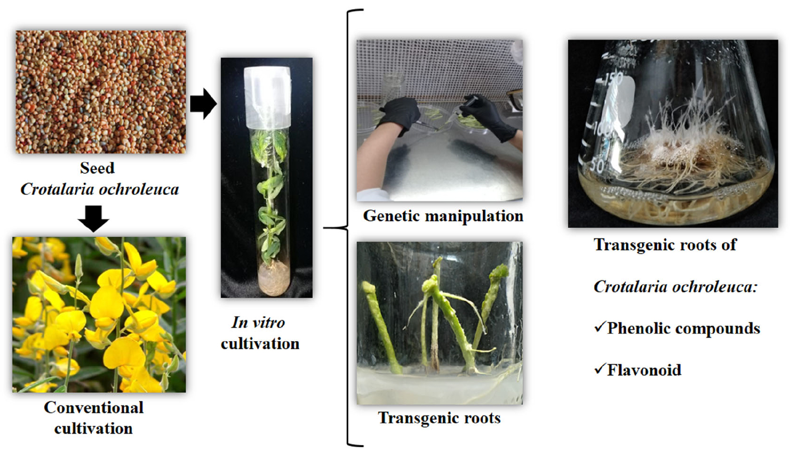 In vitro cultivation methods are followed to produce the desired compounds from the seeds of Crotalaria ochroleuca. Phenolic compounds and flavonoids were obtained from hairy roots.