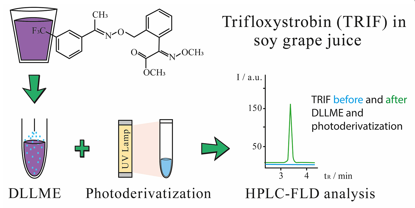 Trifloxystrobin determined in soy grape juice by high-performance liquid chromatography after liquid-liquid microextraction and UV-induced fluorescence.