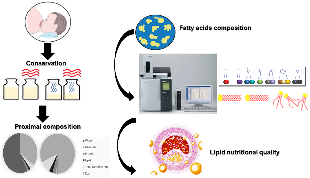 Colostrum human milk was submitted to different processes and analyzed for its proximal composition, fatty acids, and lipid nutritional quality.