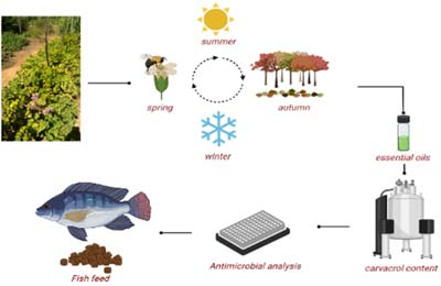 Plectranthus amboinicus extracts using carvacrol as a major compound bring out antibacterial activity against Aeromonas hydrophila strains isolated or incorporated into fish feed.