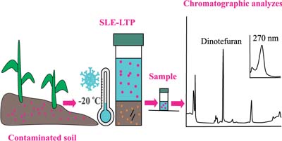 This study optimized and validated for the first time the solid-liquid extraction with low temperature purification (SLE-LTP) method to determine dinotefuran insecticide residues in soil samples.