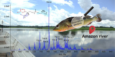 Glycerophospholipid profiles of wild Amazonian fish observed through mass spectrometry by analyzing season (drought and flood) influences.