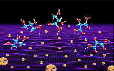 Sequenced oxidation of glycerol forming glyceraldehyde, glyceric acid, tartronic acid and mesoxalic acid catalyzed by bimetallic silver and palladium nanoparticles anchored on the cobalt ferrite surface.
