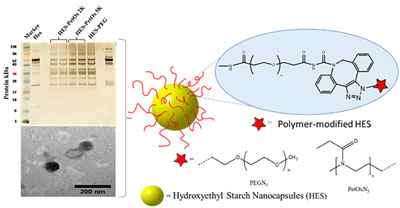 Poly(oxazoline)s coupled hydroxyethyl starch nanocapsules were developed by inverse miniemulsion via interfacial polyaddition in order to create a powerful protein suppressor vehicle.