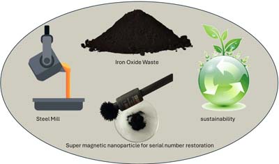 Steel mills produce metallic waste that can be reused in the synthesis of magnetic nanoparticles with forensic application, restoring serial numbers.