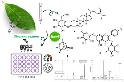 Isolation and characterization of Siparuna cymosa leaf compounds. 3-(4,5-Dimethyl-2-thyazolyl)-2,5-diphenyl-tetrazoliumbromide (MTT) assay against leukemia cell line.