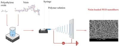 Nisin-loaded polyethylene oxide (PEO) nanofibers with antibacterial activity against Staphylococcus aureus and Bacillus subtilis were developed via green electrospinning.