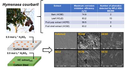 Aqueous extracts of Hymenaea courbaril are effective corrosion inhibitors, especially the fractions from the leaves and fruit pulp due to their higher content of phenolics.