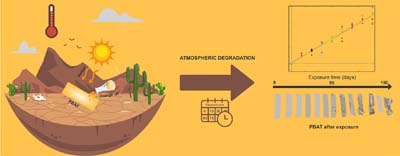 Representative process of atmospheric degradation study in a semiarid climate of pure poly (butylene adipate-co-terephthalate) films and those with orange oil additives using conventional and machine learning methods.