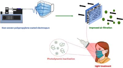 Development of a photodynamic inactivation-enhanced air filtration system using nonwoven polypropylene coated with electrospun nanofibers.