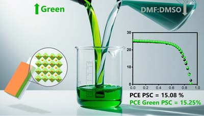 This paper advances sustainability by introducing an eco-friendly solvent for perovskite solar cell fabrication, reducing its environmental impact.