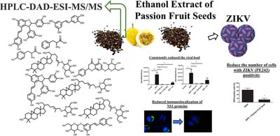 The passion fruit seed ethanol extract presents a plethora of bioactive compounds, consistently reduced the viral load of the two Zika virus (ZIKV) strains (MR766 and PE243) and cellular NS1 expression of trophoblastic cells.