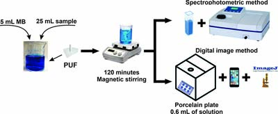 A green analytical method using polyurethane foam and methylene blue was developed for the extraction and determination of lauryl ether sulfate in personal care hygiene products employing spectrophotometric and digital image detections.