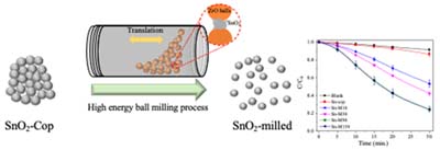 SnO2 nanoparticles are activated by the high-energy ball milling process and enhance their photocatalytic activity to degrade rhodamine B.