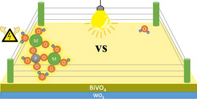 The photoelectrodeposition of oxy-hydroxide-phosphates based on Co, Fe, or Ni was performed on WO3/BiVO4 heterojunction to produce photoanodes more efficient to the water oxidation under solar simulate light. The best catalyst increased 2.83 times the photocurrent compared to the non-modified heterojunction.
