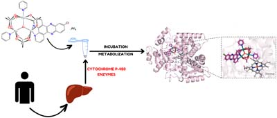 [Ru3O(CH3COO)5(py)2(dppzCl)]PF6 (py = pyridine; dppz-Cl = 7-chlorodipyrido[3,2-a:2',3'-c]phenazine) is metabolized by human cytochrome P450 enzymes when incubated with human liver microsomes.