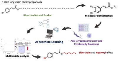 Machine learning and multivariate statistical analyses identified molecular features correlated with biological activity of phenylpropanoid against Trypanosoma cruzi.