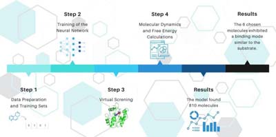 Machine learning combined with virtual screening has enabled the discovery of a significant variety of molecules exhibiting high affinity with shikimate kinase. Subsequent evaluation through molecular dynamics and free energy calculations has facilitated the identification of potential inhibitor candidates.